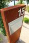 Freistehende Cortenstahl Briefkastenanlage mit Ihrer Hausnummer.