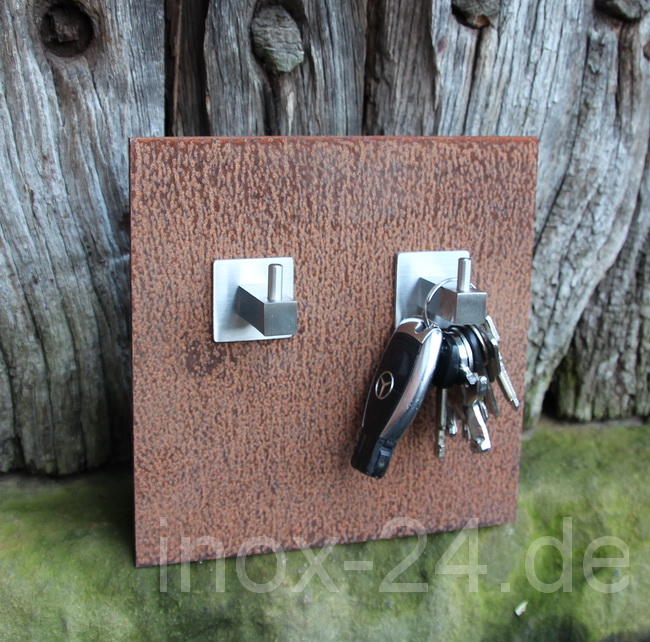 Schlüssel Board 3 mm Cortenstahl und 2 Edelstahlaufhänger.